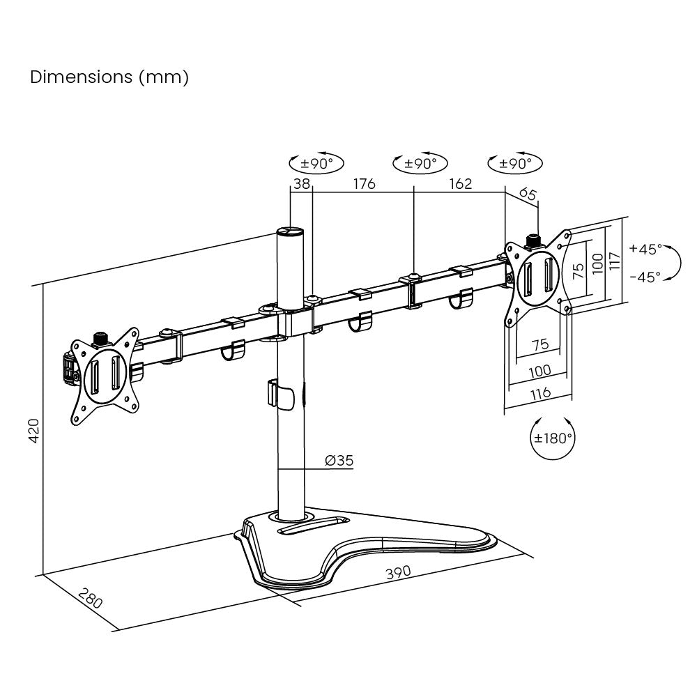 - Dual-monitor freestanding monitor support.