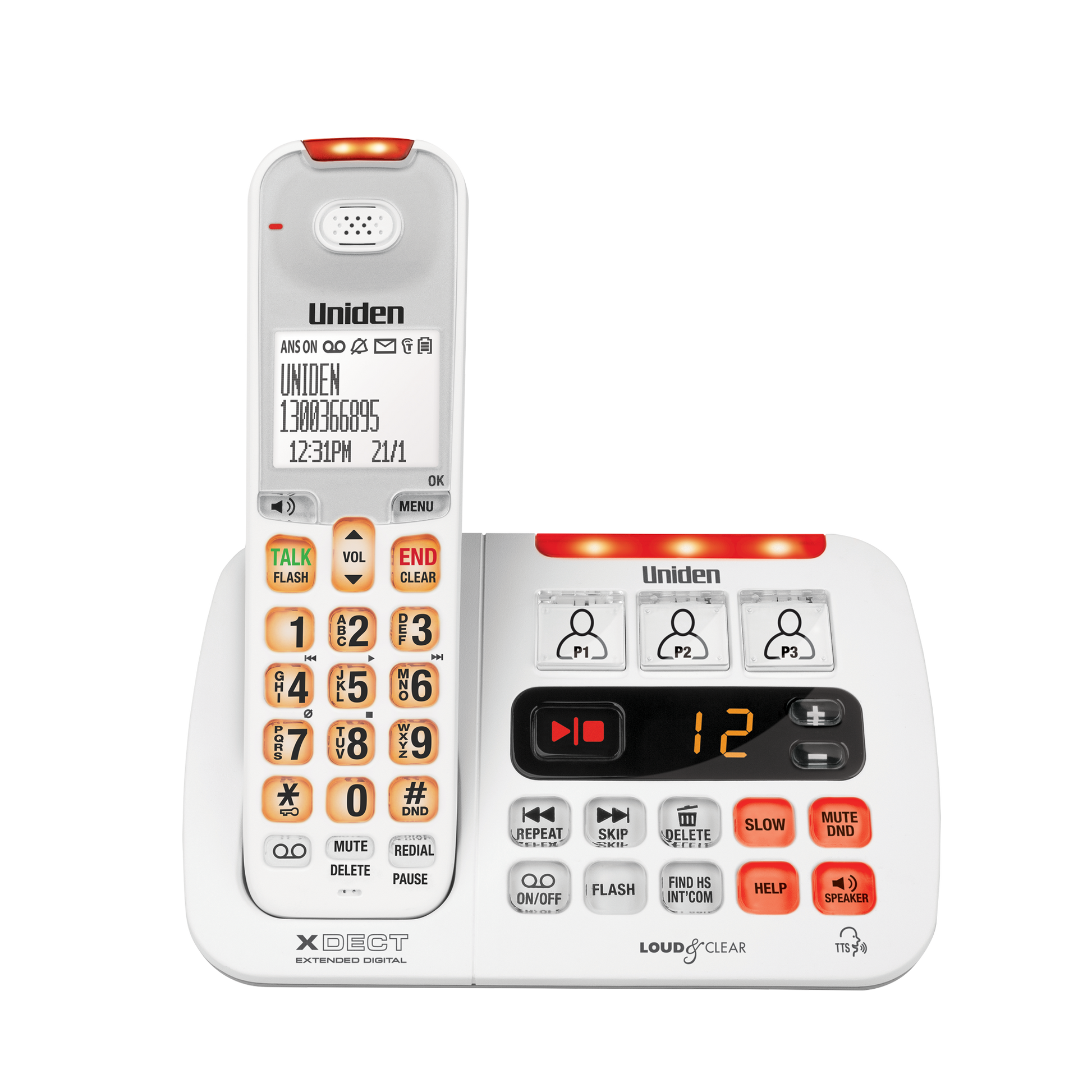 The SS E45 is equipped with an Integrated Digital Answering Machine with Slow Playback, ensuring you never miss that important call. The XDECT Digital Cordless Phones offer Extended Digital Coverage by utilising a Diversity Antenna System for Optimal Reception and Clarity – by mitigating multi-path errors. It also features a High Gain Antenna for greater range and to eliminate drop our areas in your home. The SSE45 is equipped with Text to Speech (TTS) Technology†. The Extra Loud 50dB volume ringer & Large Screen Buttons are ideal for Hearing Loss/ Elderly people, Visual Problems / Low Vision, Noisy homes or workplaces.