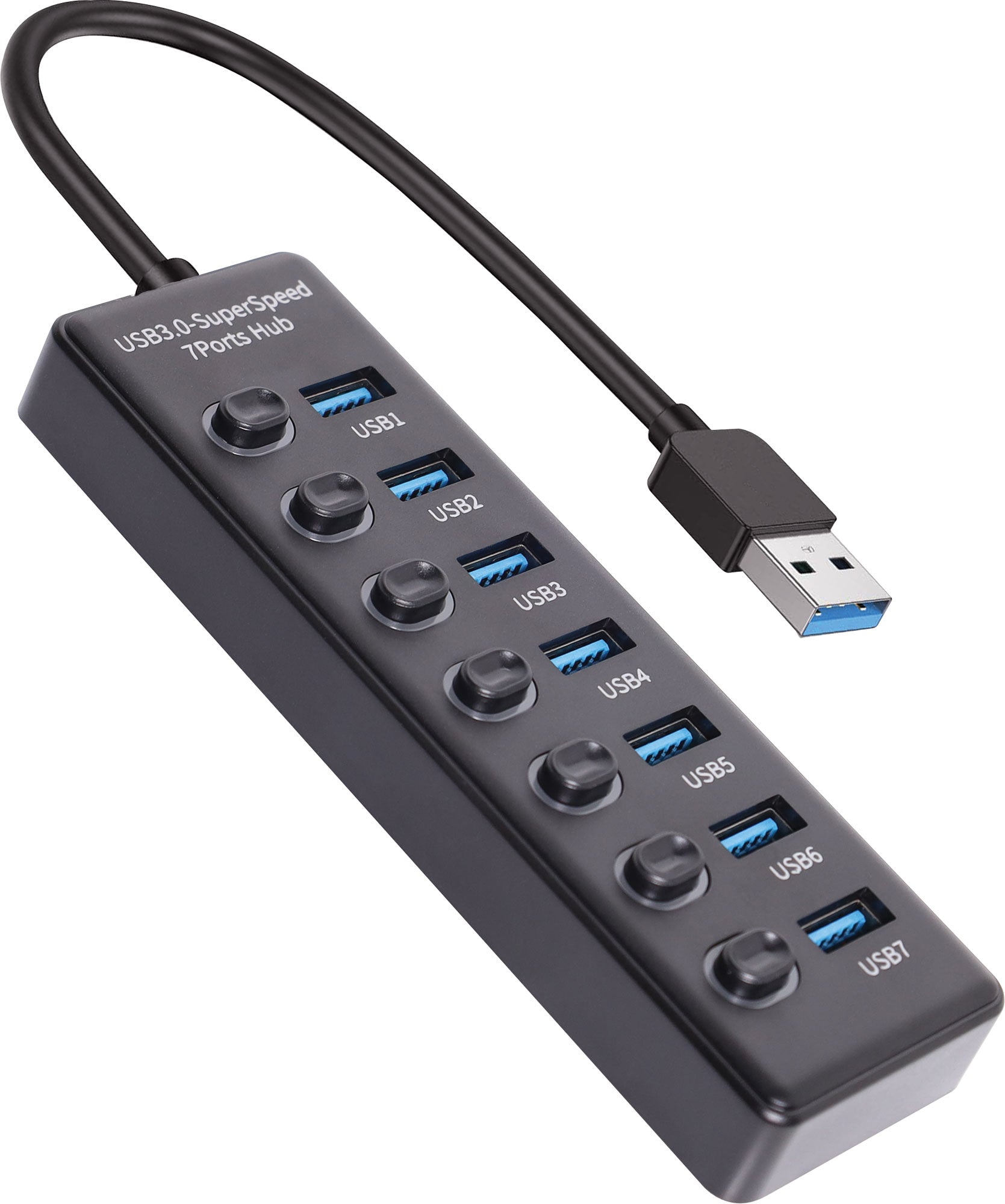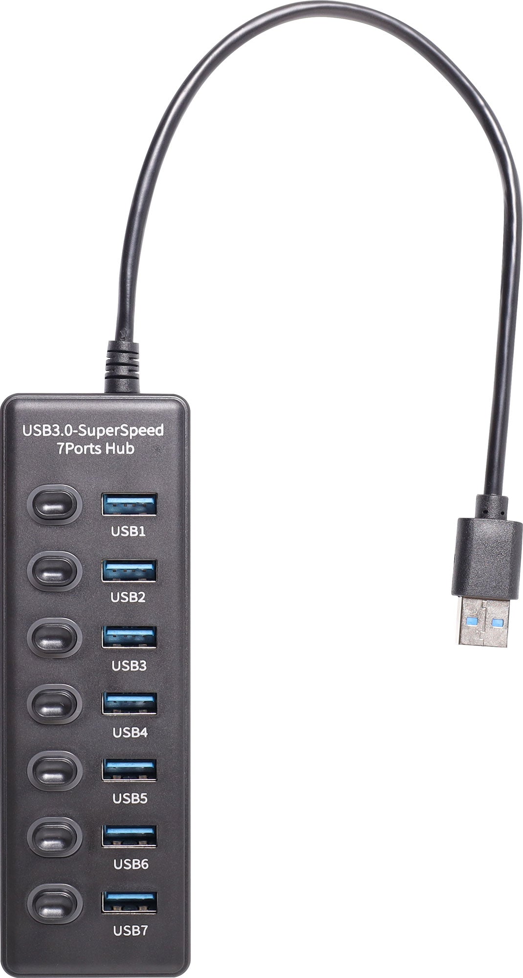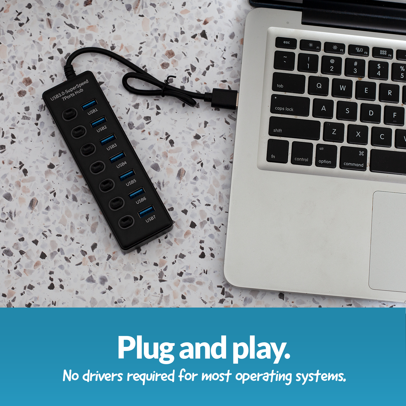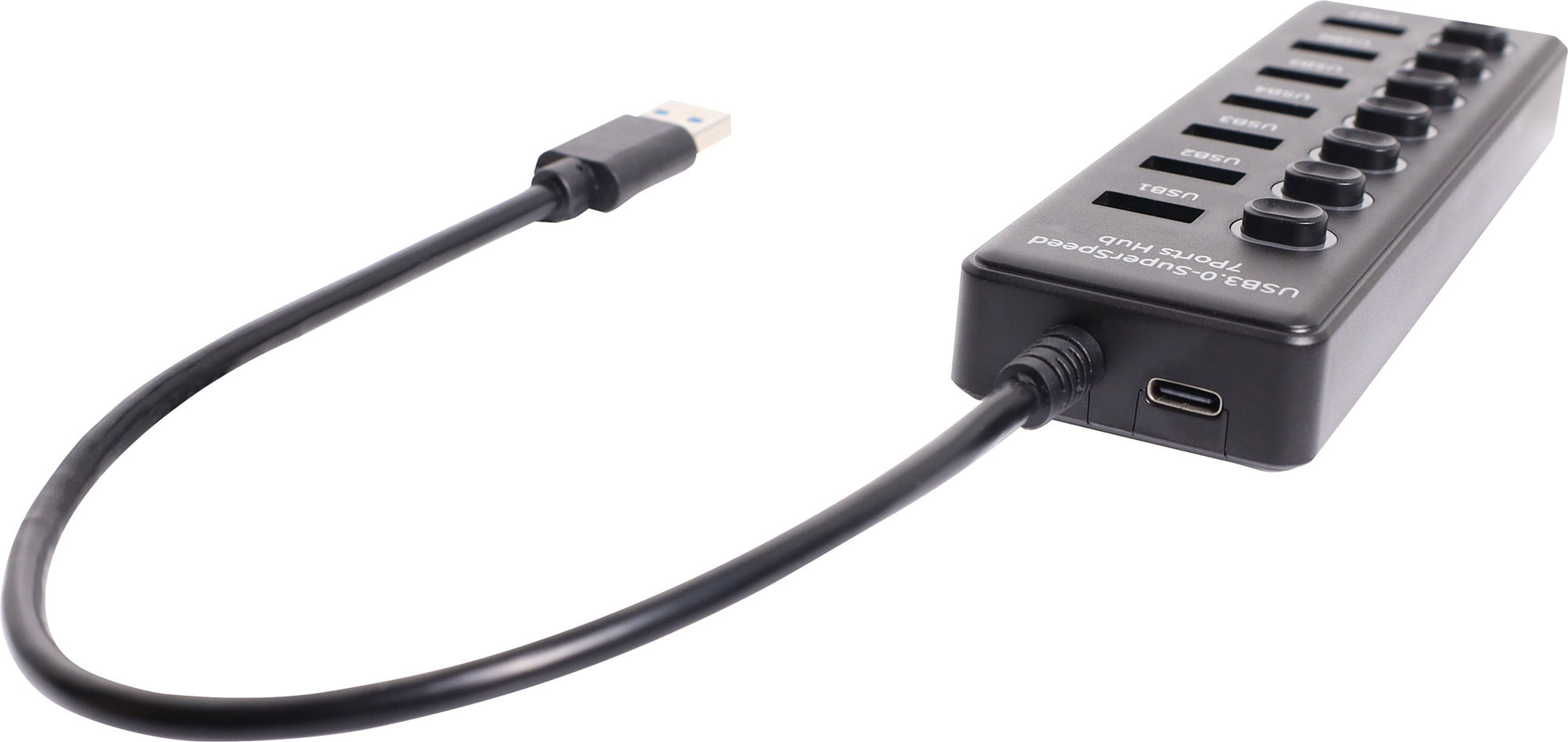 A handy 7 port USB 3.0 hub for those with lots of peripherals! Each connection has a dedicated on/off switch. USB type C power input with type A connection to your computer.