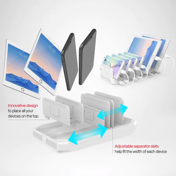 - Innovative design for space saving, put your devices on top of charging station when charging