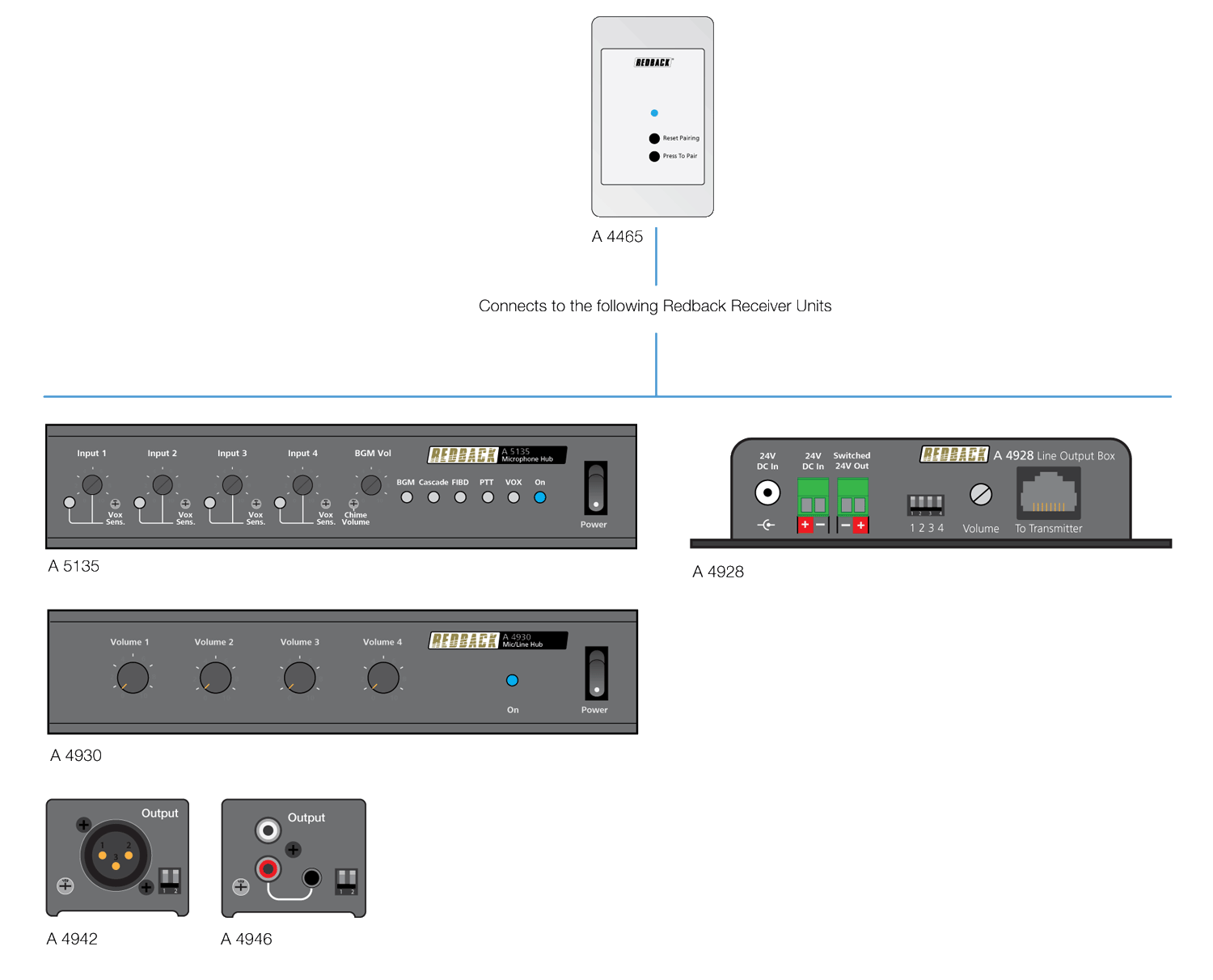 - UTP output connection for extending signal to system amplifiers using Redback UTP solutions receivers.