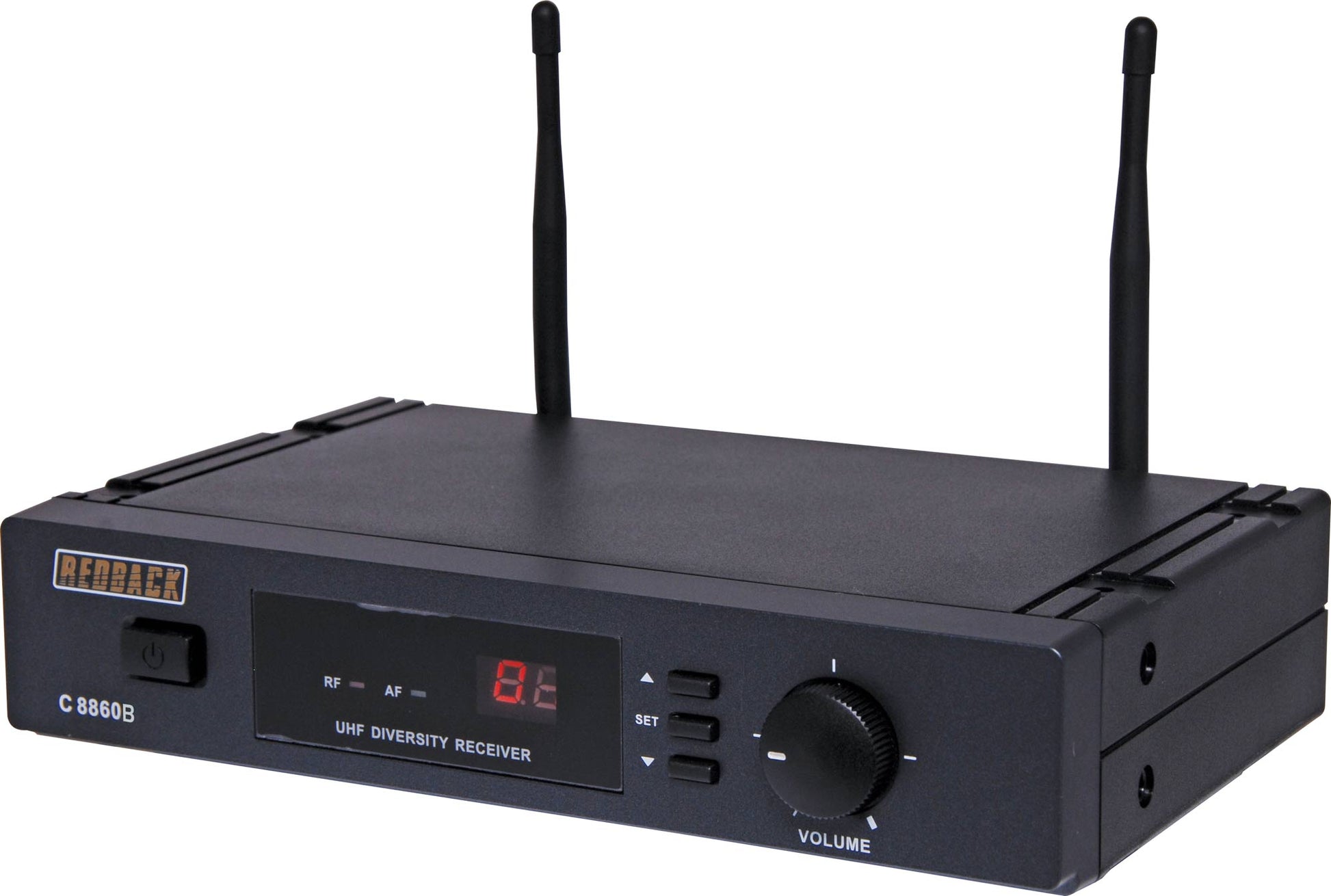 A 16 channel auto scanning UHF wireless microphone system receiver. The Auto-Scan option allows quick and easy selection of an interference free operating frequency. This is particularly useful when there are many existing systems in use nearby. Incorporates diversity reception ensuring a consistent and clear microphone signal with minimal dropout and noise interference. 16 channels allow interference free operation with multiple systems in the one location. Noise reduction system automatically compensates for high level sound inputs thus avoiding distortion. Channel and volume settings are adjusted via front panel. The LCD screen displays selected group, channel & frequency. A range in excess of 100m is possible in ideal conditions. Output is via 3 pin XLR balanced or 6.35mm unbalanced. LEDs are provided for displaying system status. The system operates from 12-18VDC (power supply included).